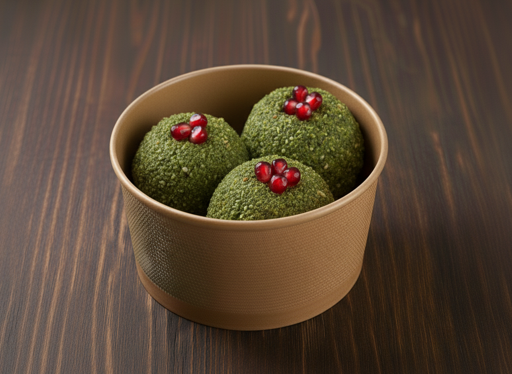Spinach, bean paste, coriander, vinegar, salt (0.100 g, ≈ 25–35 kcal)