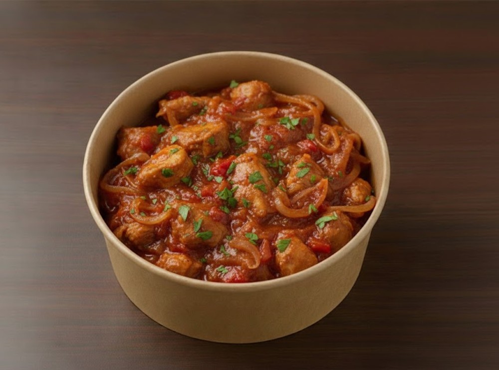 Georgian chicken stew with tomatoes, herbs, onions, rich aromatic flavor
